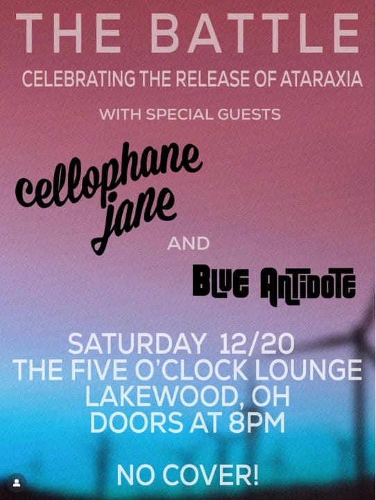 my band Cellophane Jane played their last show of 2025 at the 5 ‘O Clock Lounge in Lakewood supporting The Battle & Blue Antidote.